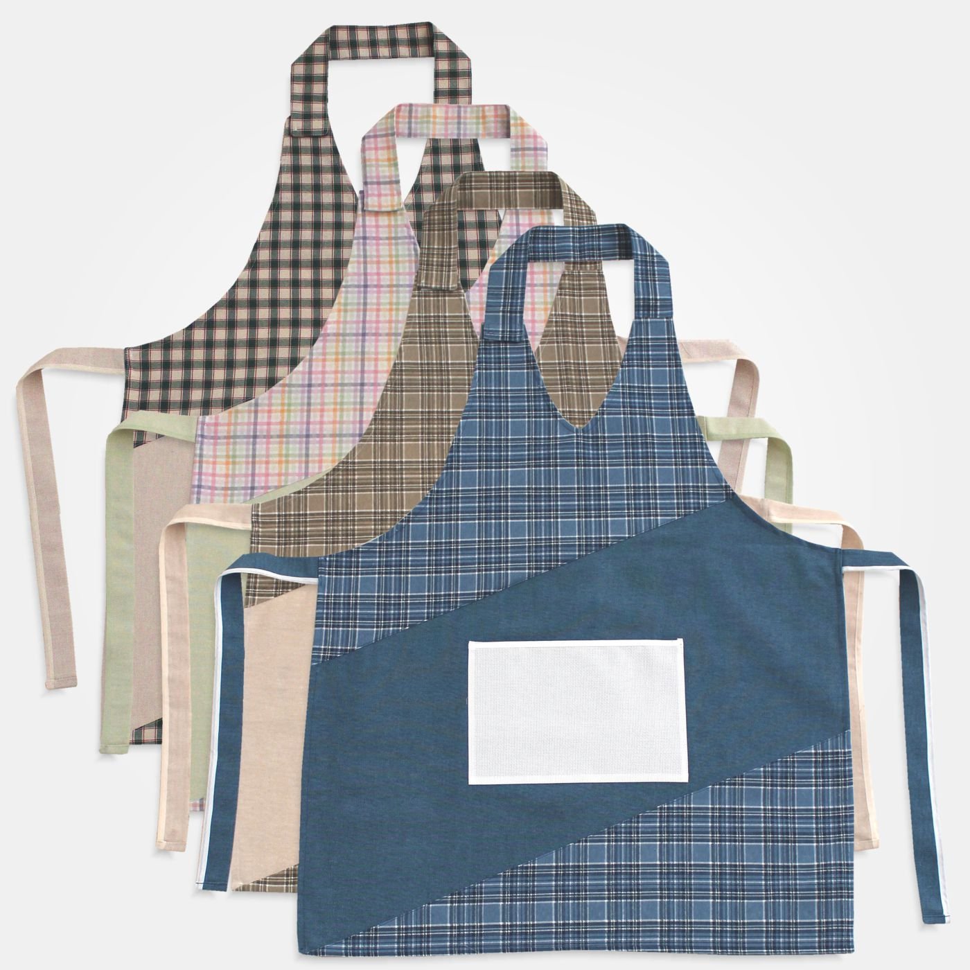 Realizzato con inserti in due tessuti coordinati, presenta una grande tasca centrale in tela Aida 55 fori, perfetta per essere personalizzata con ricami.