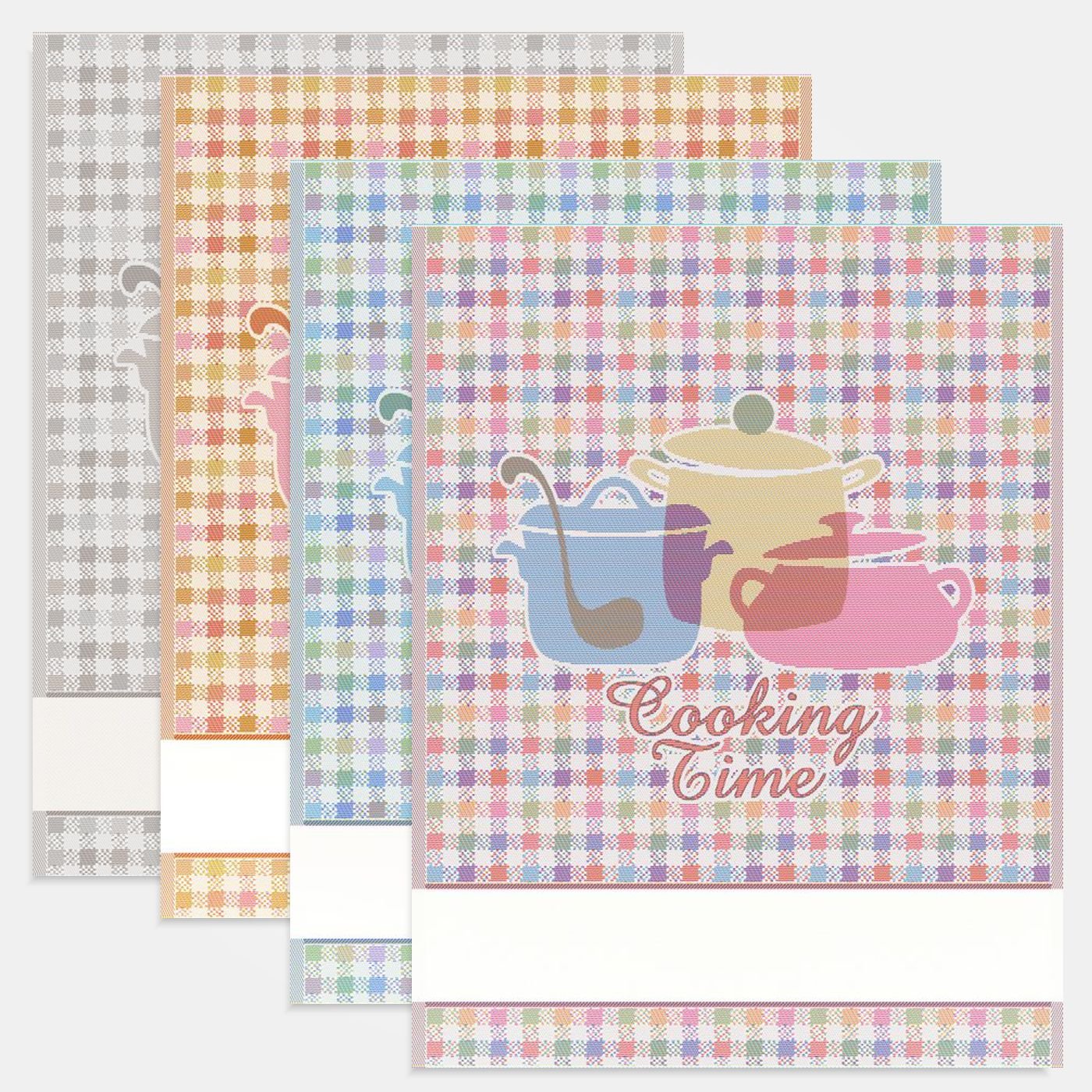 Strofinaccio della tessitura artistica chierese con disegno cooking time su fondo scozzese e inserto di tela Aida.