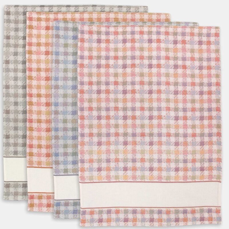 Strofinaccio della tessitura artistica chierese con disegno pattern modello dama a quadretti e inserto di tela Aida.