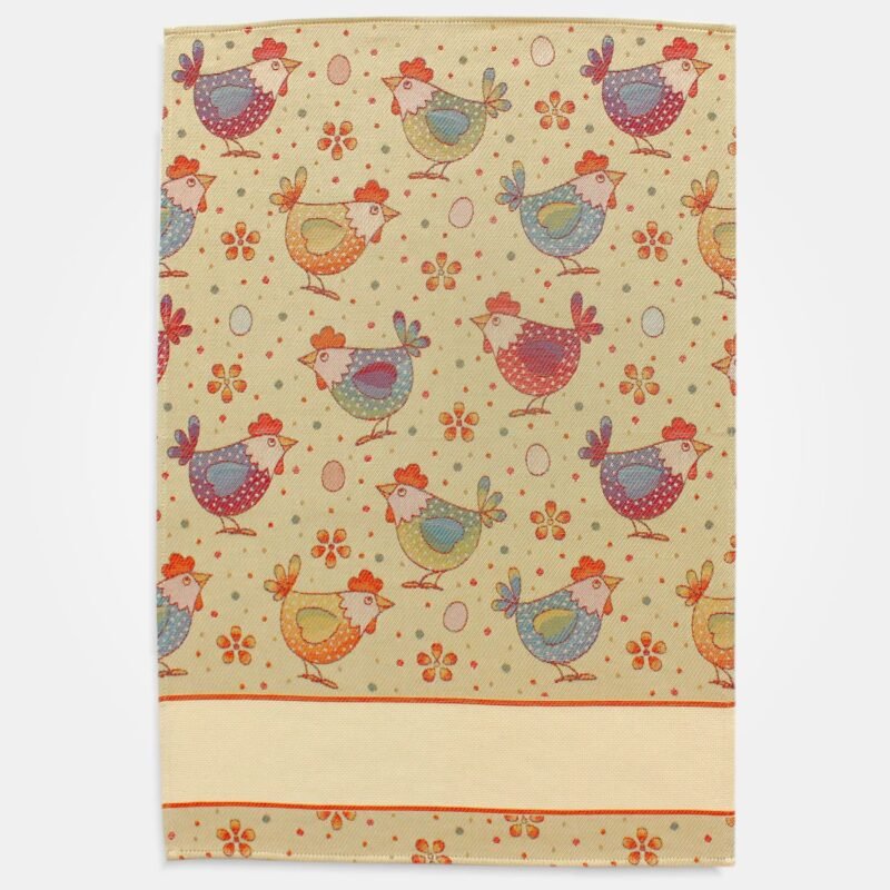 Strofinaccio della tessitura artistica chierese con disegno PIUMETTE GRANDI e inserto di tela Aida.