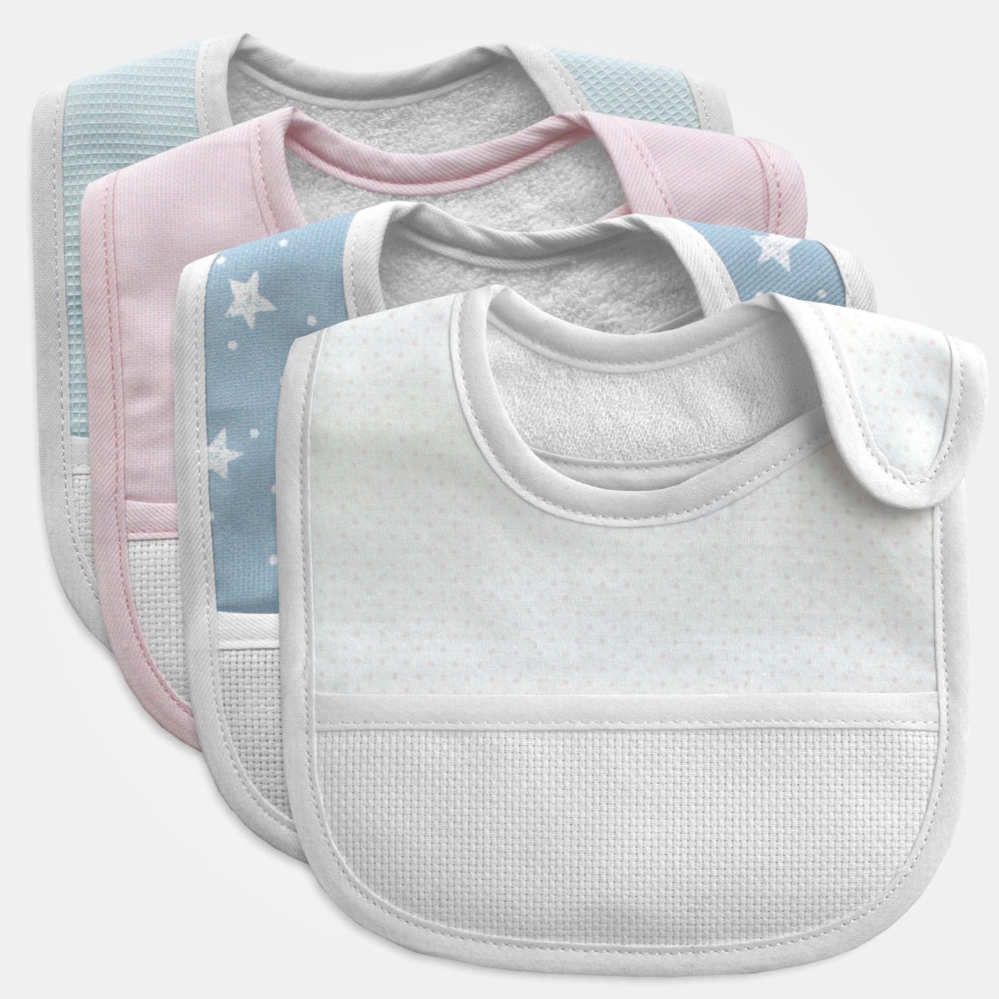 Bavaglia bimbo/a con taschina in tela aida bianca 55 fori da ricamare.