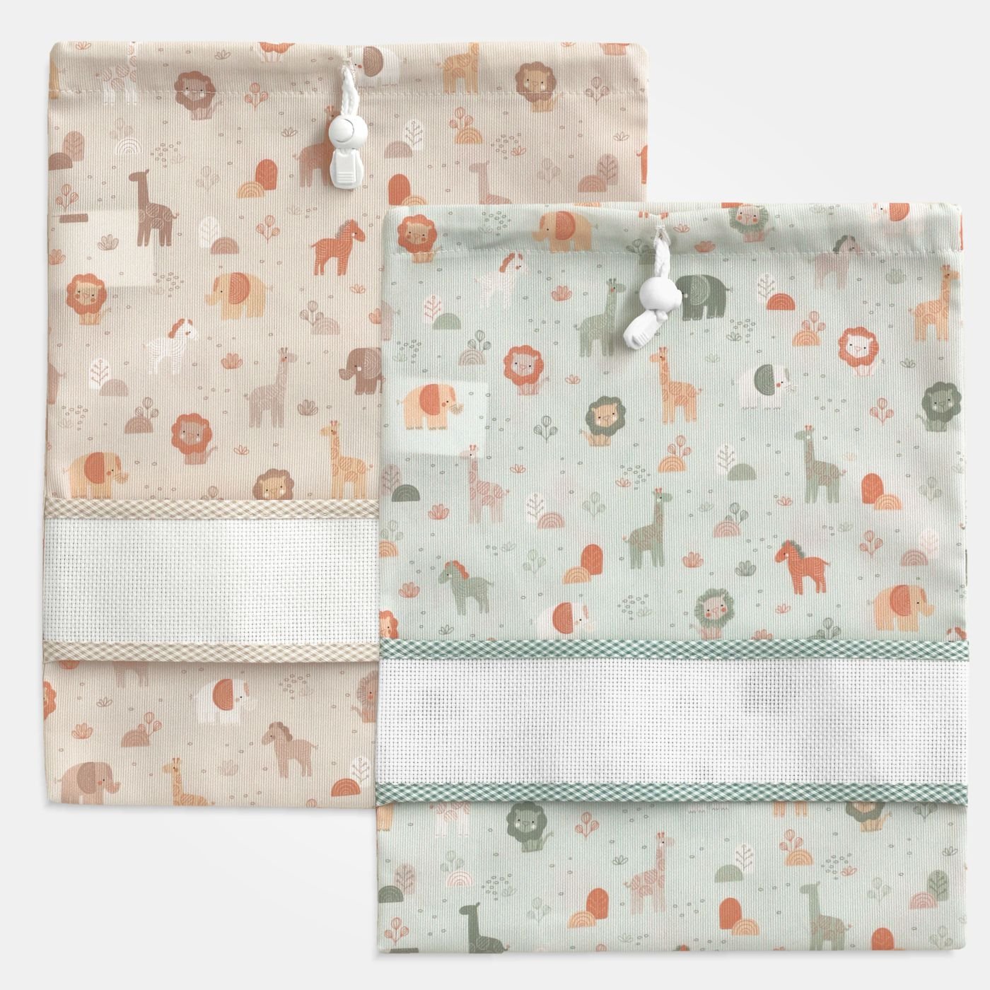 Sacchetto porta corredino in fantasia “Africa” con tela Aida.