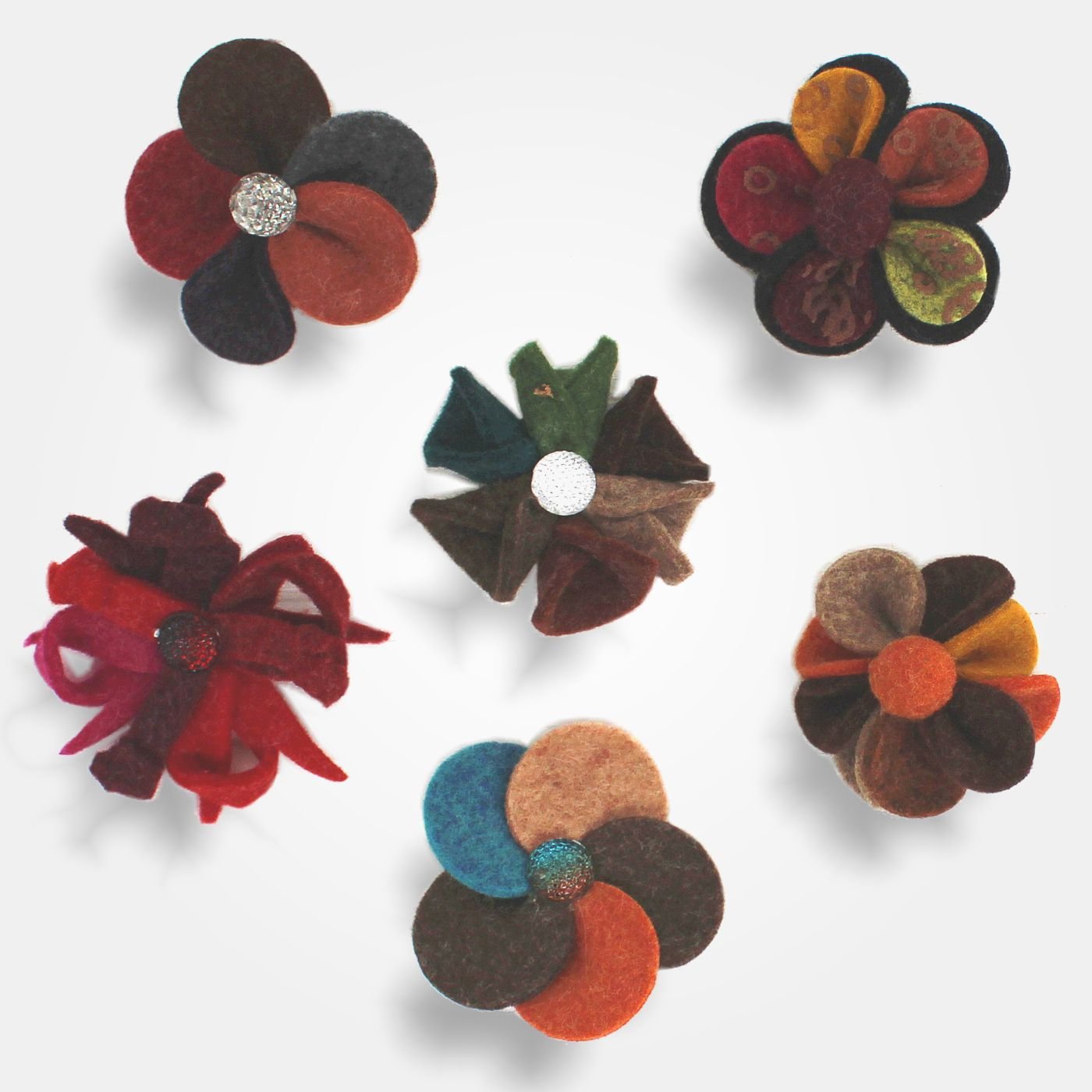 Set di 6 spille piccole in Feltro a Forma di Fiore