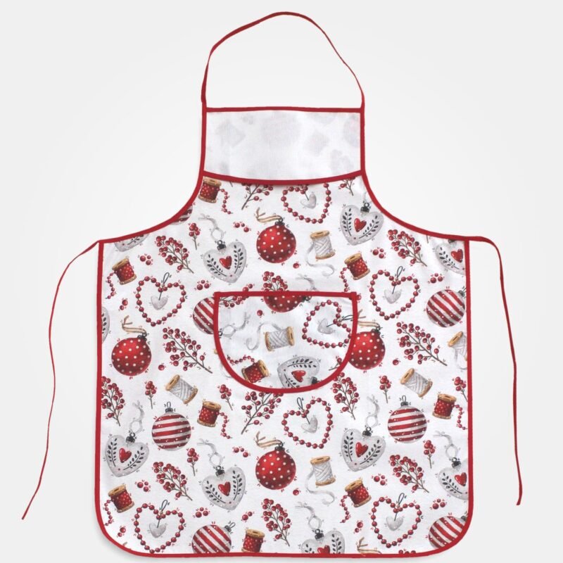 Grembiule intero da cucina in tessuto natalizio fantasia cuori Natalizi rossi.