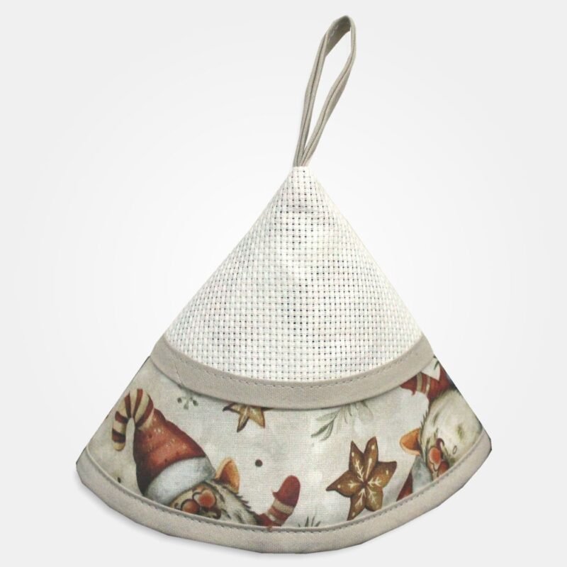 Presina dalla forma a cappuccio in tessuto fantasia natalizio gnometti pan di zenzero con tela Aida 55 fori.
