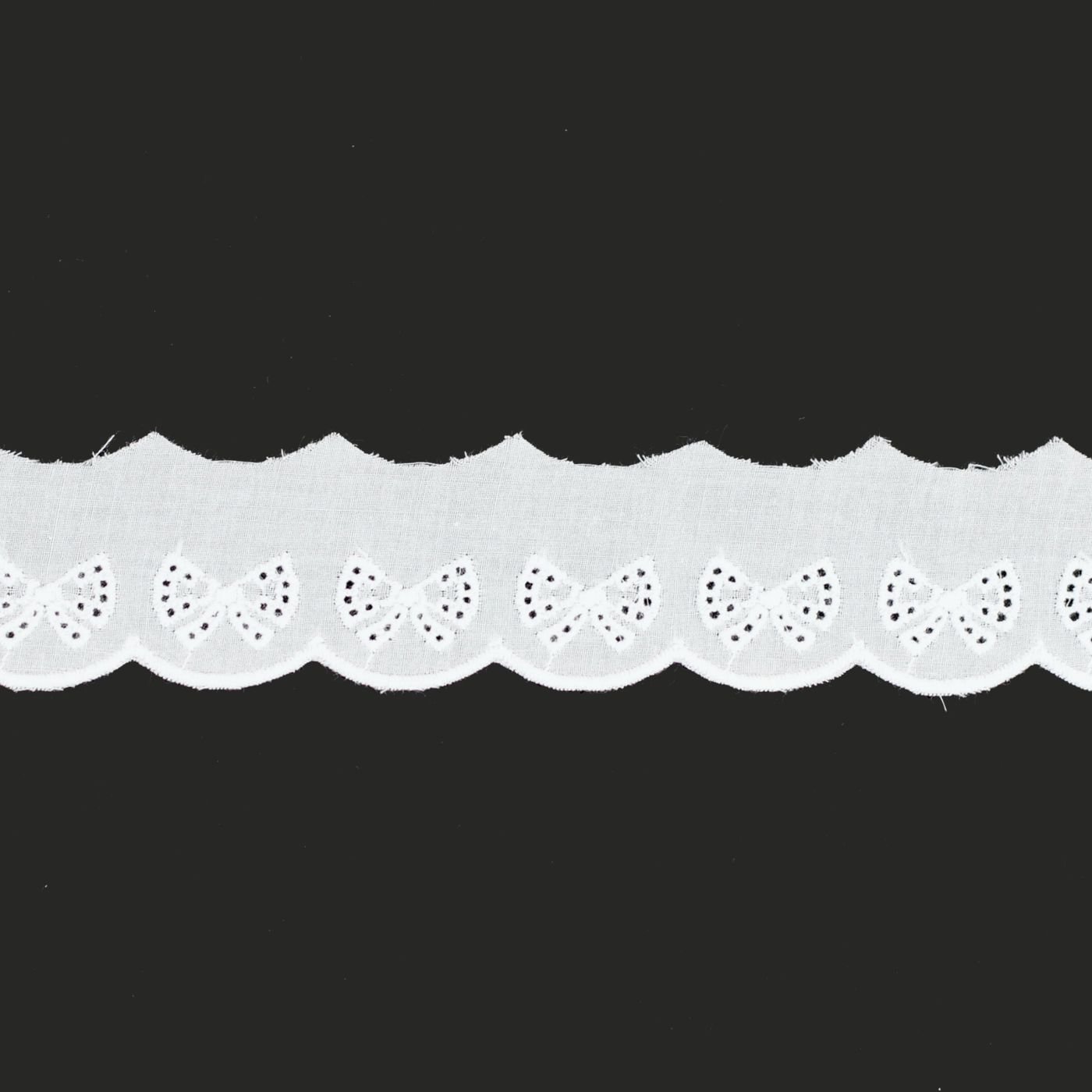 Elegante pizzo Sangallo bianco, raffinato e delicato, ideale per valorizzare capi d’abbigliamento, biancheria per la casa, accessori e progetti di sartoria creativa.